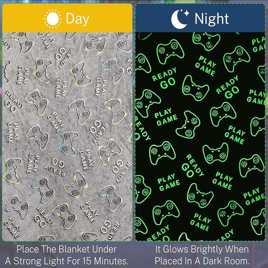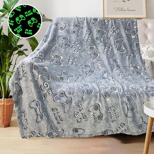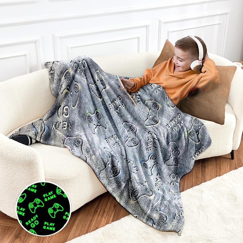Wajade Kuscheldecke Kinder Glow in The Dark Decke Babydecke Flauschig Kuscheldecke Flanellstoff Wolldecke für Mädchen Junge Geburtstag Gamepad 130 * 150