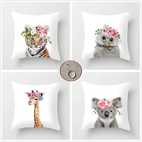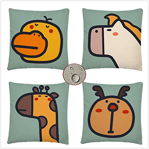 wasserdichte Kissenbezugen 4 Stück 80x80cm Dekorative Outdoor Deko Kissen Kissenbezüge Stilvolles Dekorative Kissenhülle für Sofakissen Garten Outdoor Wohnzimmer Schlafzimmer, Giraffen-Enten-Tier
