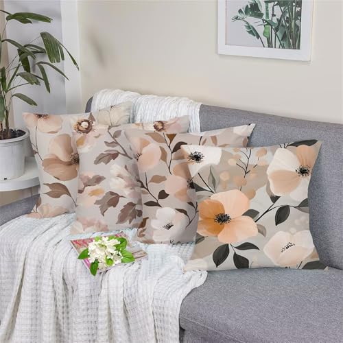 【DOUBLE SITED DRUCK】: Die doppelseitigen altrosa blume muster dekokissen. Der druck ist vital, klar und schwer zu verblassen, leicht zu spülen