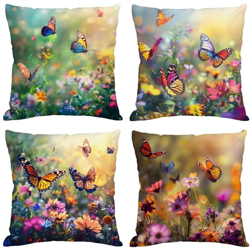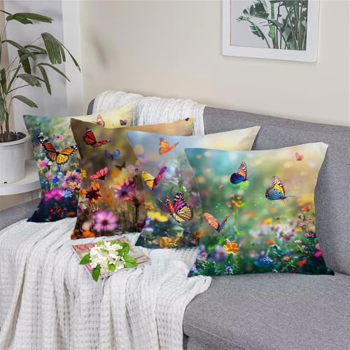 【DOUBLE SITED DRUCK】: Die doppelseitigen bunt schmetterling muster dekokissen. Der druck ist rührig, klar und schwer zu verblassen, leicht zu Geschirr spülen