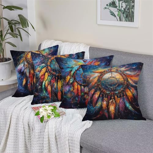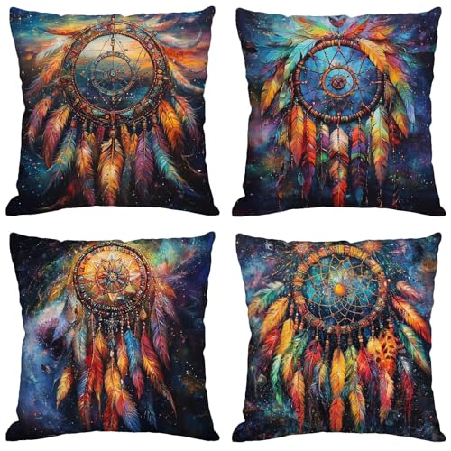 【DOUBLE SITED DRUCK】: Die doppelseitigen bunt traumfänger muster dekokissen. Der druck ist engagiert, klar und schwer zu verblassen, leicht zu Geschirr spülen
