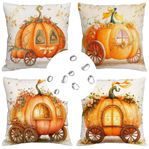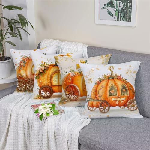 【DOUBLE SITED DRUCK】: Die doppelseitigen orange kürbis muster dekokissen. Der druck ist betriebsam, klar und schwer zu verblassen, leicht zu ausspülen
