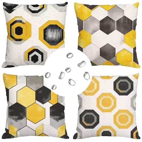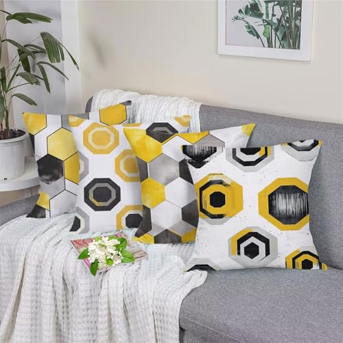 【DOUBLE SITED DRUCK】: Die doppelseitigen weiß gelb muster dekokissen. Der druck ist tätig, klar und schwer zu verblassen, leicht zu abwaschen
