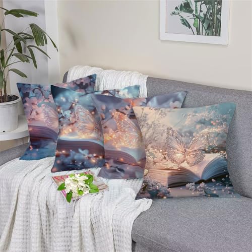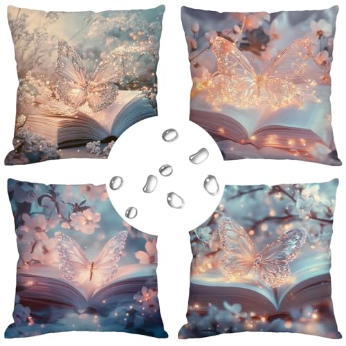 【DOUBLE SITED DRUCK】: Die doppelseitigen weiß schmetterling muster dekokissen. Der druck ist angeschaltet, klar und schwer zu verblassen, leicht zu abwaschen