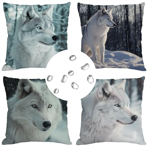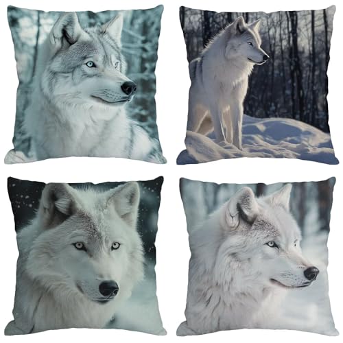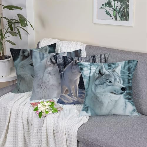 【DOUBLE SITED DRUCK】: Die doppelseitigen weiß wolf muster dekokissen. Der druck ist rührig, klar und schwer zu verblassen, leicht zu ausspülen