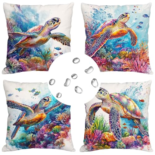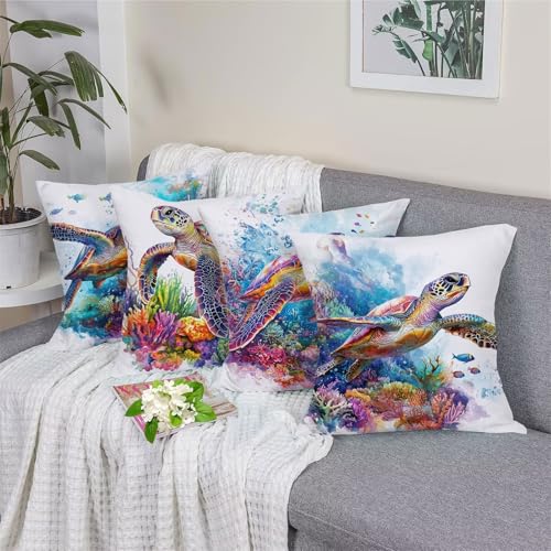 【DOUBLE SITED DRUCK】: Die doppelseitigen weiß meeresschildkröten muster dekokissen. Der druck ist eingeschaltet, klar und schwer zu verblassen, leicht zu ausspülen