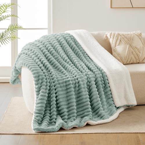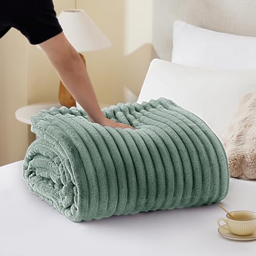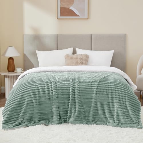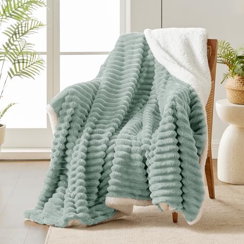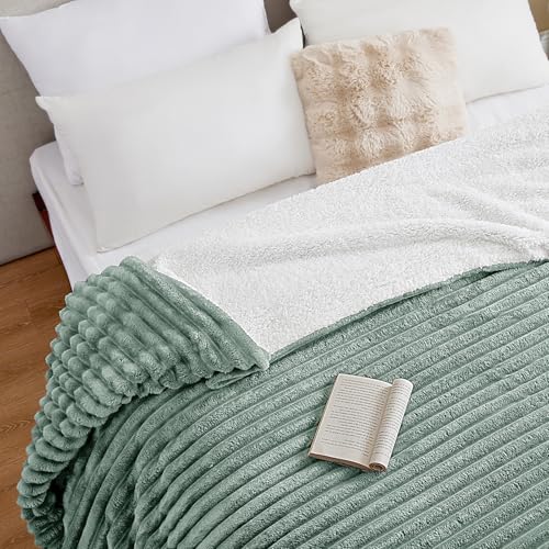 WAVVE Decke Sherpa Kuscheldecke Flauschig Grün – Extra Warme Dicke Weiche Grobe Kordecke Sofaüberwurf, Sofadecke Doppelgesicht, 150×200 cm XL Wolldecke Couchdecke Wohndecke