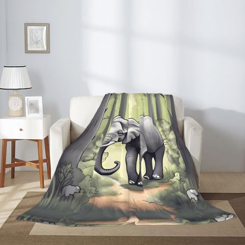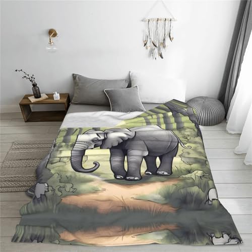 WBQLSL Dekorative Kinderdecke mit Elefantenmotiv, 127 x 101,6 cm, Sofa, Bett, Wohnzimmer, Camping, Reisedecke, Flanell, Geschenkdecke