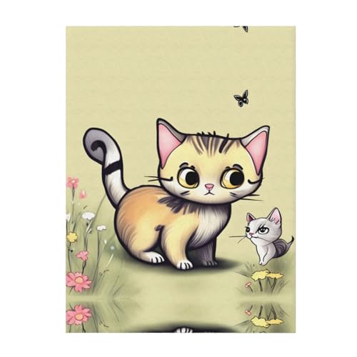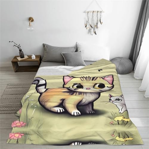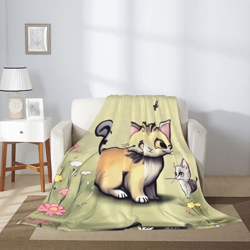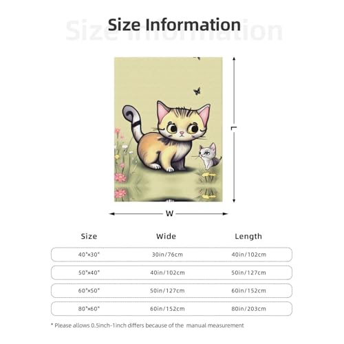 【Größe und Material】 Die Katze und Schmetterling Kinderdecke ist 50 x 40 Preis groß und besteht sämtliche Polyester und Flanell. Polyester ist langlebig und warm, und Flanell ist super weich, was sehr gut für die zarte Kinderhaut Angebracht ist.