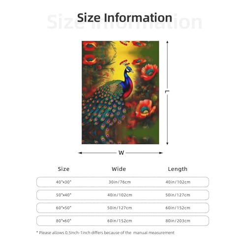 Diese Kinderdecke mit Pfauenblumen besteht jeder 100 % Polyester und kann in verschiedene Wohnstile integriert werden, um eine künstlerische Adresse zu verleihen. Die Decke ist super weich und sehr leicht, so dass sie leicht zu verankern ist. Es hat eine breite Palette von Anwendungen. Es kann auf das Bett gelegt werden, um die Wärme zum Schlafen zu erhöhen, und es ist ein guter Freizeitbegleiter auf dem Sofa, wo Sie sich einrollen und entspannen können. Es spielt eine große Rolle bei Campingausflügen und bringt Wärme jederzeit und überall. Es hat eine hervorragende Wärmedämmleistung und kann die Kälte effektiv blockieren. Es ist bekannt als sehr langlebig und nicht leicht zu schrumpfen oder zu knittern. Es bleibt nach mehrmaligem Gebrauch in gutem Zustand. Es hat eine gute Anti-Pilling-Leistung und ist bekannt als nach langfristigem Gebrauch glatt und flach. Es ist freundlich zu Menschen mit empfindlicher Haut. Es ist nicht aber ein praktischer Alltagsbedarf, sondern bekannt als ein Symbol für Lebensqualität, das dem Leben Wärme und Schönheit verleiht.