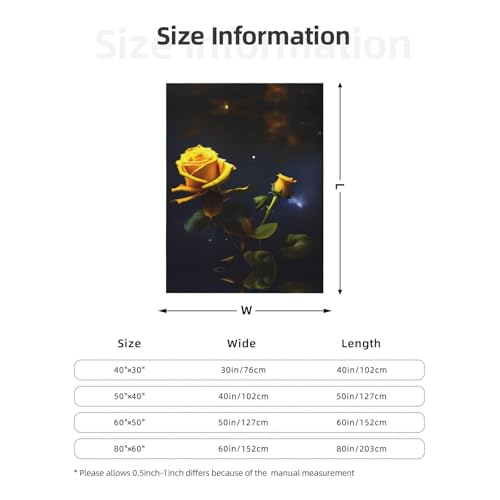 【Größe und Material】 Die gelbe Rosen Sternennacht Kinderdecke ist 50 x 40 Zins groß und besteht alle Polyester und Flanell. Polyester ist langlebig und warm, und Flanell ist super weich, was sehr gut für die zarte Kinderhaut Angemessen ist.