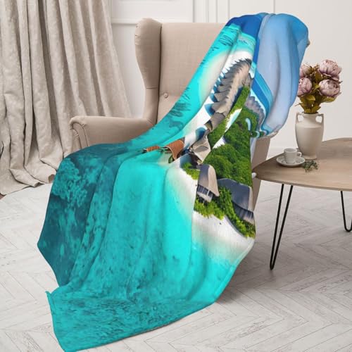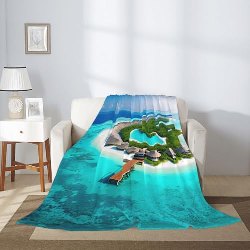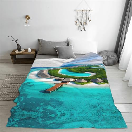 WBQLSL Malediven Landschaft, dekorative Kinderdecke, (127 x 101,6 cm), Sofa, Bett, Wohnzimmer, Camping, Reisedecke, Flanell, Geschenkdecke