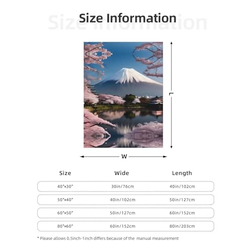 Größe und Material – Die Mt. Die Fuji im Frühjahr Kinderdecke ist 127 x 101,6 cm groß und besteht jeder Polyester und Flanell. Polyester ist langlebig und warm, und Flanell ist super weich, was sehr gut für die zarte Kinderhaut Im Rahmen ist.