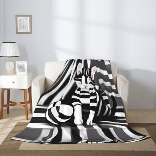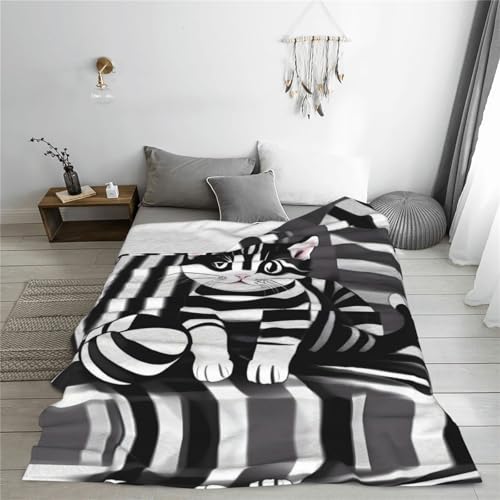 【Größe und Material】 Die schwarz-weiß gestreifte Kätzchen-Kinderdecke ist 50 x 40 Aufwand groß und besteht ganz Polyester und Flanell. Polyester ist langlebig und warm, und Flanell ist super weich, was sehr gut für die zarte Kinderhaut Angebracht ist.