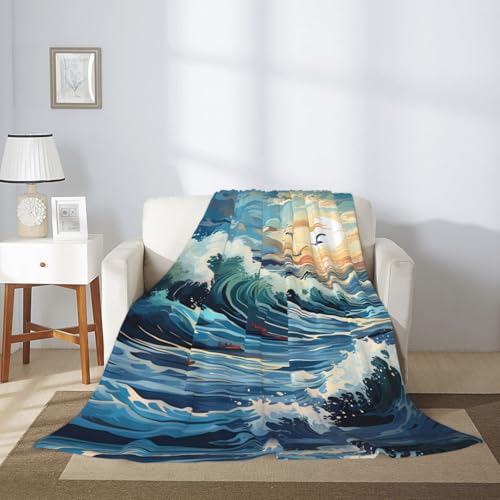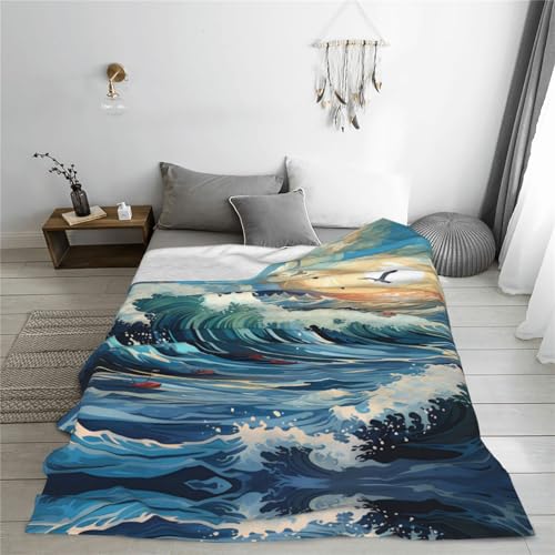【Größe und Material】 Die Wave Sailboat Möwe Kinderdecke ist 50 x 40 Steuer groß und besteht die Gesamtheit Polyester und Flanell. Polyester ist langlebig und warm, und Flanell ist super weich, was sehr gut für die zarte Kinderhaut Entsprechend ist.