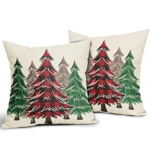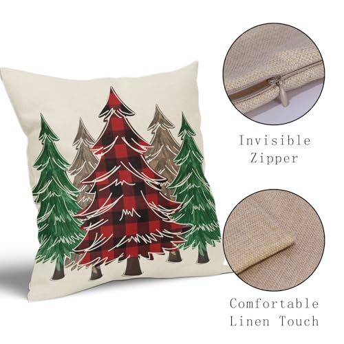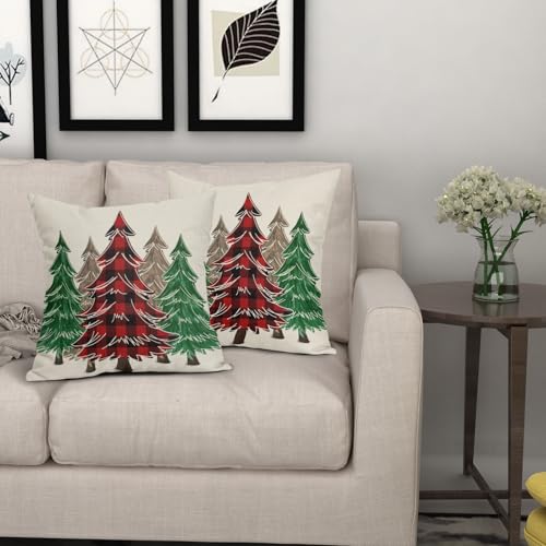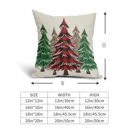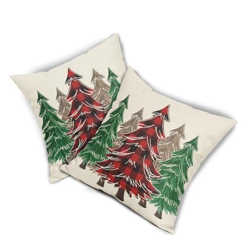 Weihnachtsdekor-Stil: Rot kariert, braun, grün, Weihnachtsbaum-Muster schafft einen Urlaubsstil für Ihr Zuhause. Weihnachtsbaum-Kissenbezüge eignen sich sehr gut für die Dekoration von Wohnzimmer, Schlafzimmer, Schlafsaal, Couch, Terrasse, Veranda-Schaukel, Balkon, Auto, Büro.