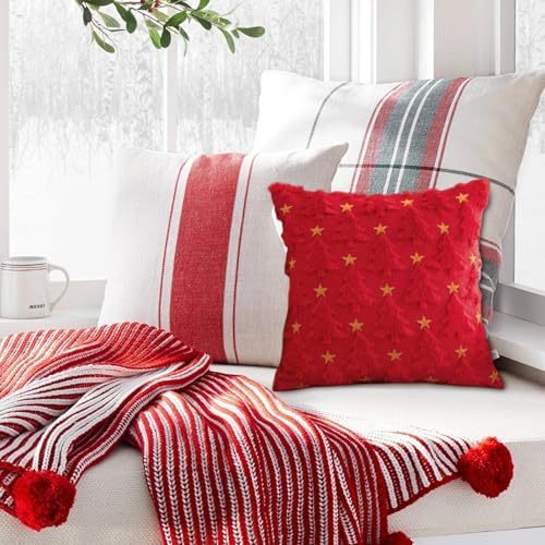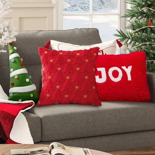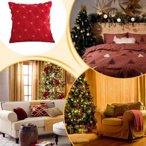Kultivieren Sie ein festliches Ambiente: Diese Weihnachtsbaum-Kissenbezüge in leuchtendem Rot oder Grün mit goldenen Sternen verleihen Ihrem Weltraum Wärme, verbreiten die Freude an Weihnachten und Kultivieren ein perfektes Ambiente für die Weihnachtszeit