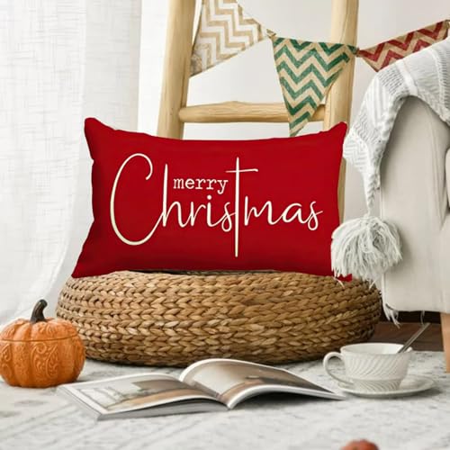 Weihnachtskissenbezüge, Frohe Weihnachten, Dekokissen, dekorativ, weihnachtlich, roter Baumwollstoff, Leinenstoff, Kissenbezug, Sofabezug, dekorativ, rechteckig, Länge 30,5 x 50,8 cm, Material: Leinen, Farbe: qua das Foto zeigt (aufgrund des Unterschieds zwischen verschiedenen Monitoren kann das Foto leichte Farbunterschiede aufweisen. Bitte stellen Sie vor der Ackerbau gefestigt, dass es Ihnen nichts ausmacht. Vielen Dank!) Paketgewicht: 80 g. Paketgröße: 20 x 30 x 1 cm.