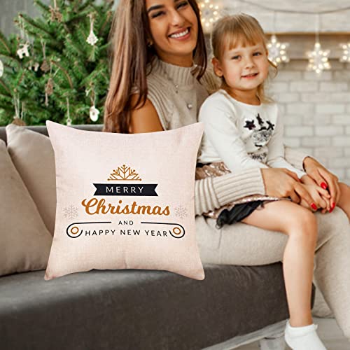Weihnachtskissenbezug 45×45 cm, Weihnachten Kissenbezüge, Kissenbezüge Dekokissen, Zierkissenbezüge, Leinen Look Kissenbezüge, Weihnachts Dekorationen Kissenhülle, Weihnachtskissen Kissen