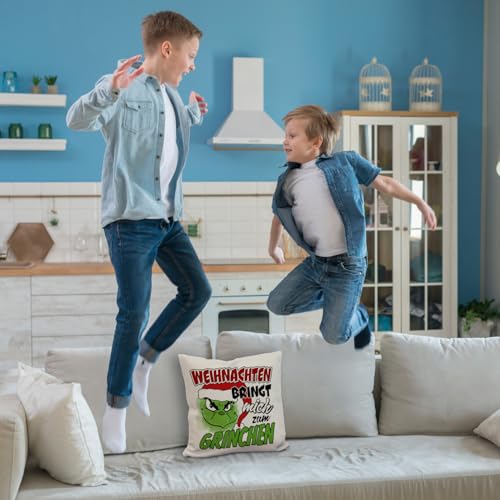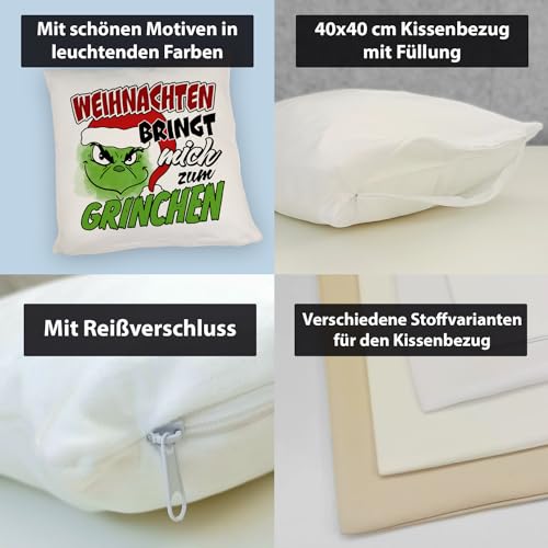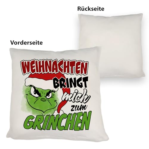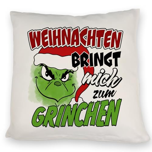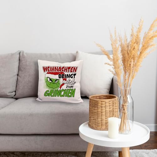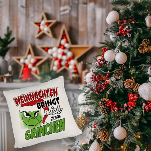 Lieferumfang: 1x Weihnachtsmuffel Kissen mit Spruch Weihnachten bringt mich zum Grinchen