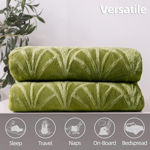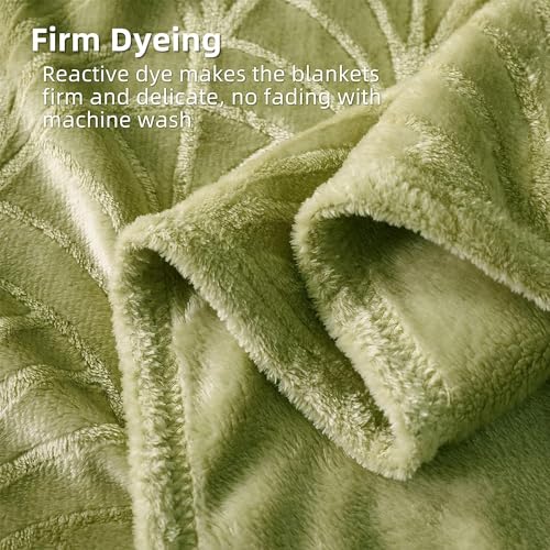Whale Flotilla Kuscheldecke Decke mit Blätter Muster, Warme Sofadecke Wohndecke – Superweiche und Kuschelige Flanell-Decke, 150×200 cm Olivgrün