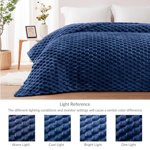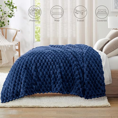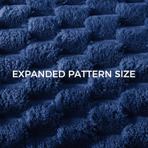 Whale Flotilla Kuscheldecke Flauschige Decke mit 3D-Jacquard-Muster, Exquisite und Warme Wohndecke Sofadecke für Ganzjahreszeiten, 130×150 cm, Marineblau