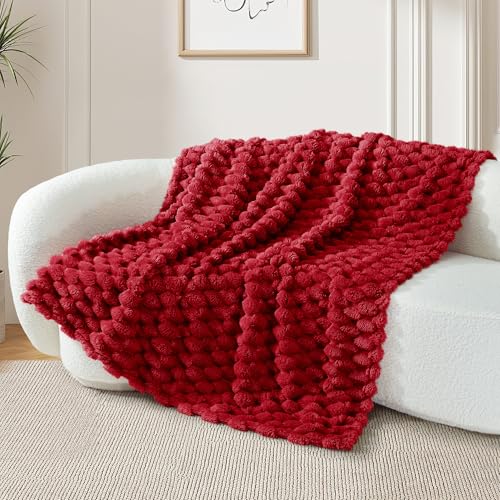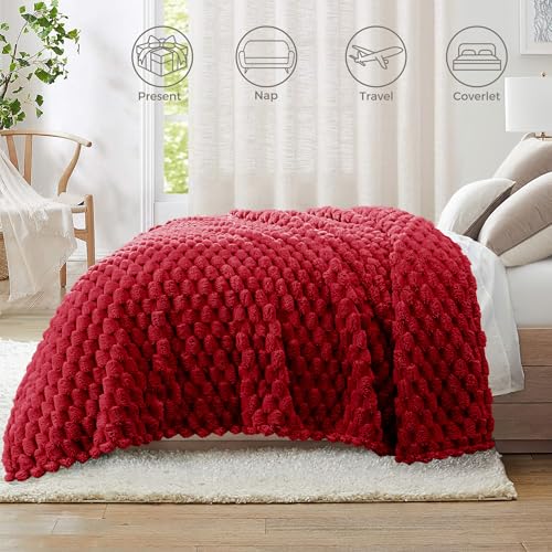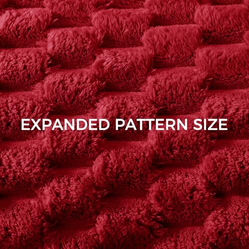 Whale Flotilla Kuscheldecke Flauschige Decke mit 3D-Jacquard-Muster, Exquisite und Warme Wohndecke Sofadecke für Ganzjahreszeiten, 130×150 cm, Rot