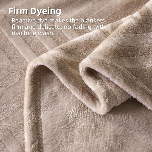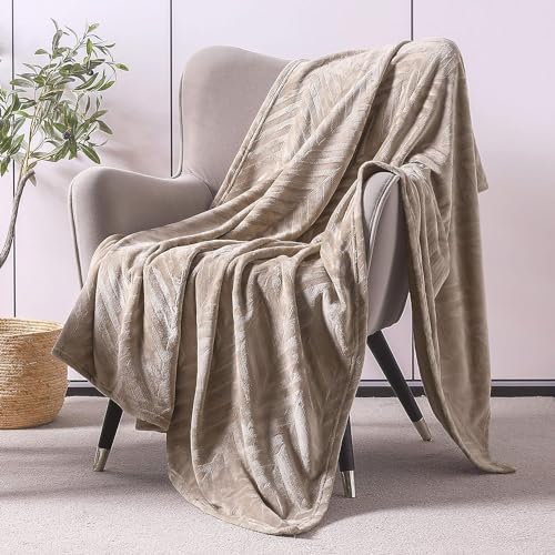 Whale Flotilla Kuscheldecke mit Chevron Muster 150×200 cm, Warme Sofadecke Wohndecke – Superweiche und Kuschelige Fleecedecke Flanell-Decke, Beige