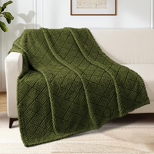 Whale Flotilla Kuscheldecke, Weiche, Warme und Flauschige Waffeldecken für Jede Jahreszeit,130X150CM, Olivgrün