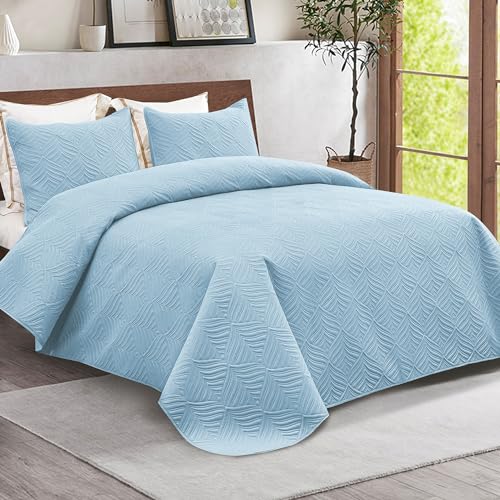 Whale Flotilla Moderne Tagesdecke 240×260 cm, Bettüberwurf mit 2 Kissenbezüge, Mikrofaser Bettdecke mit Prägemuster, Leichte und Weiche Bettwäsche für 4-Jahreszeite, Blau