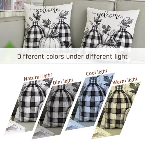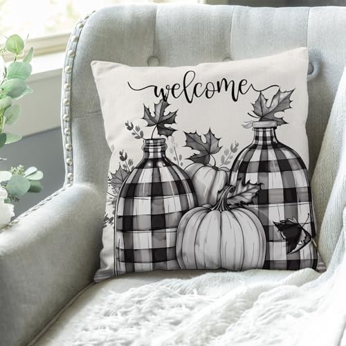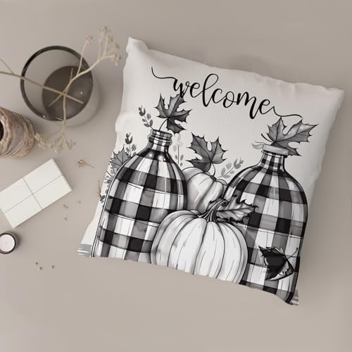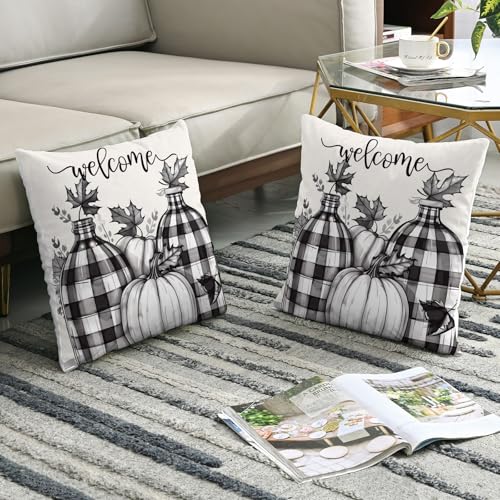 Willkommens-Kissenbezüge, 2er-Set, schwarz, kariert, Kürbis, Herbst, dekorative Dekokissen für Zuhause, Sofa, Bett, Couch, 50,8 x 50,8 cm