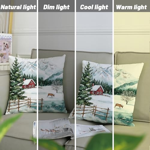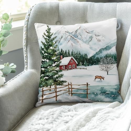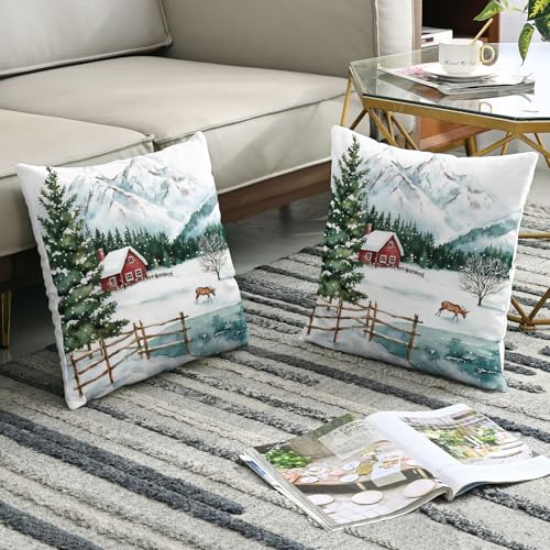 Winter-Kissenbezüge, 2er-Set, dekorative Dekokissen, Motiv: schneebedeckte Berglandschaft, rustikale saisonale Bauernhaus-Dekoration, Kissenbezüge zugunsten gemütliches Zuhause, Sofa, Bett, Couch, 50,8 x 50,8 cm