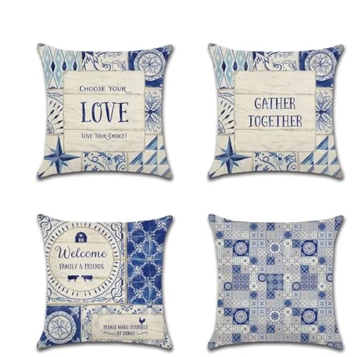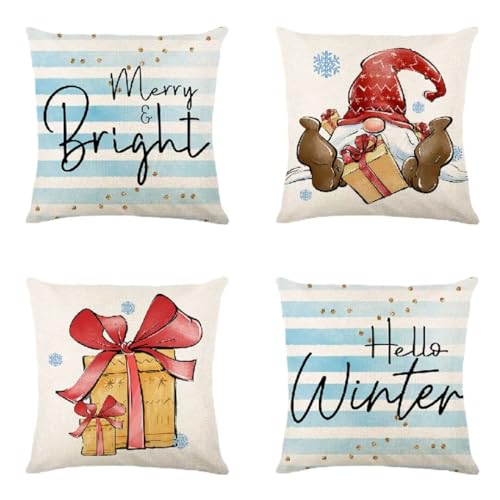 Winter Kissenbezug 80 x 80 cm Sofakissen Super Weich Kopfkissen 4er Set Schnee Kissen Deko Kissenhülle mit Unsichtbarem Reißverschluss Kopfkissenbezug Quadrat Kissen für Schlafzimmer Wohnzimmer R876