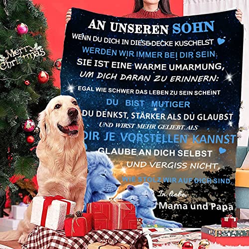 ❤100% ZUFRIEDENHEITSDIENST:Diese Kuscheldecke ist ein wunderbares und sinnvolles Geschenk von Mama und Papa an sohn, Eltern sohn decke spiegeln indirekt Ihren Segen und Ihre Fürsorge für Ihre Kinder wider. Wenn Sie andere personalisierte Decken benötigen, können Sie unseren Shop betreten, um weitere Stile zu erhalten. Wenn Sie Fragen haben, kontaktieren Sie uns bitte, wir sind jederzeit für Sie da und helfen Ihnen weiter