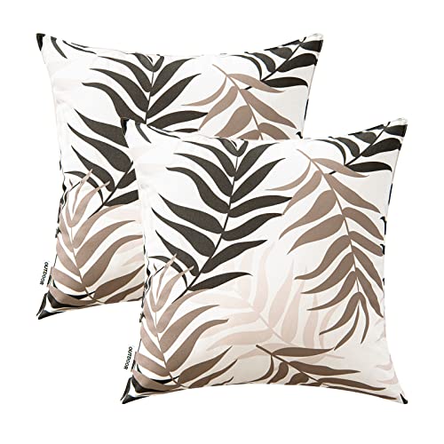 Woaboy 2er Set Outdoor wasserdichte Kissenbezüge Kissen Wasserfest Kissenhülle Dekohülle Sofakissen für Garten Balkon Wohnzimmer 40x40cm (Blätter Braun)