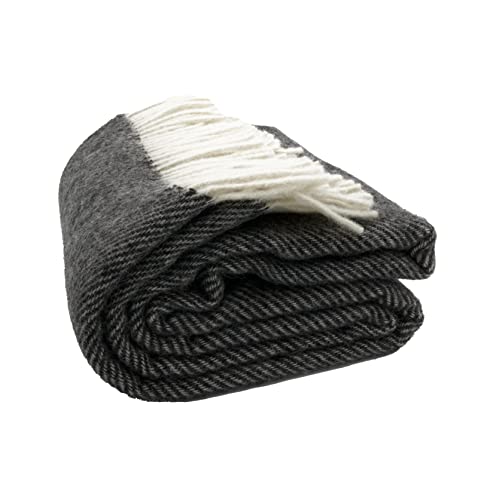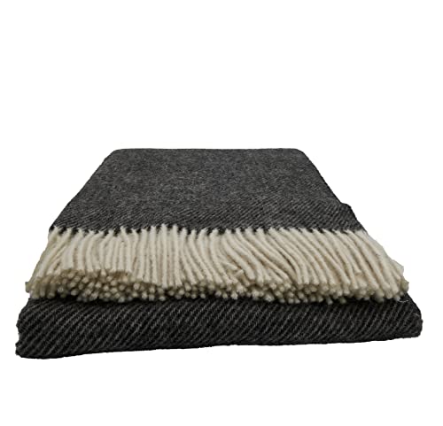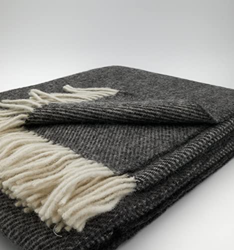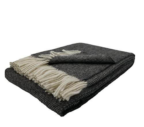 Wohndecke O.K. Deluxe Wolle pur | Wolldecke nicht mehr da 100% Wolle | Couchdecke / Sofadecke | Wohlfühlende und Anschmiegsame Kuscheldecke | 100% Reine Wolle mit Fransenborde