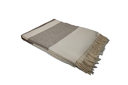 Wohndecke Fair Deluxe Kaschmir Easy Care | Kaschmir Wolldecke | Sofadecke/Couchdecke | Tagesdecke | Flauschig & Kuschlig warm |140 x 190 cm (Hellbraun/Dungelbraun Blockstreifen, Kaschmier/Wolle)