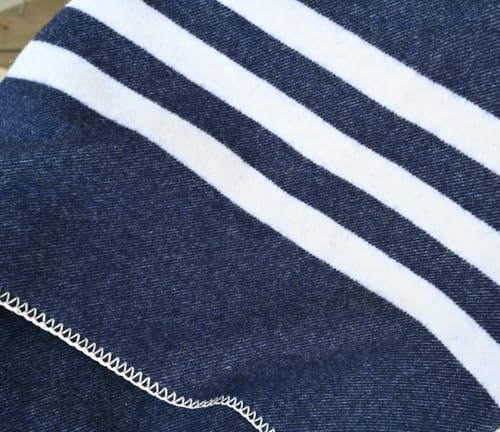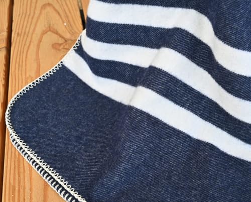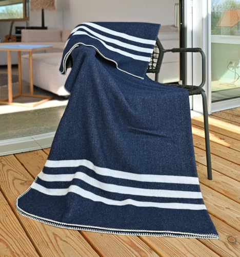 Wohnen & Accessoires GmbH & Co. KG Wolldecke Kuscheldecke Wohndecke Couchdecke 150x200cm Stripes umkettelt (Marine-Blau)