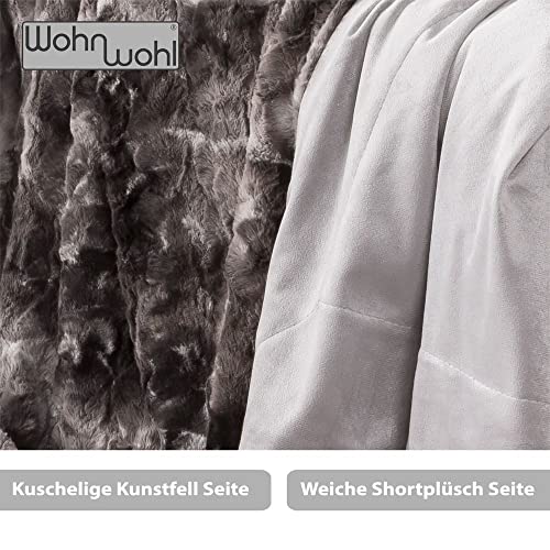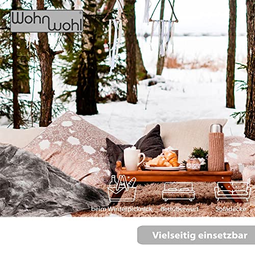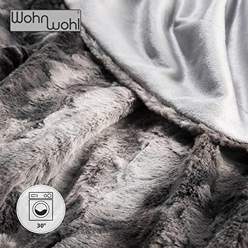 HOCHWERTIGE QUALITÄT: Oberseite besteht nicht mehr da 100% Polyester, Mikrofaser Kunstfell und die Unterseite nicht mehr da 100% Mikrofaser Shortplüsch. Auf Basis von die hochwertige Vollziehung behält die Decke ihrer Form und bleibt über Jahre hinweg ein Eyecatcher in jedem Wohnzimmer und Schlafzimmer.