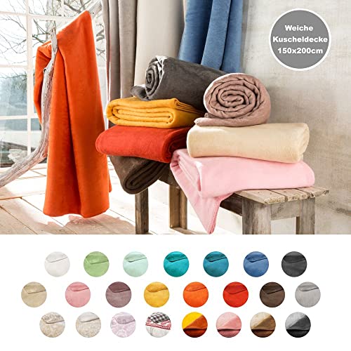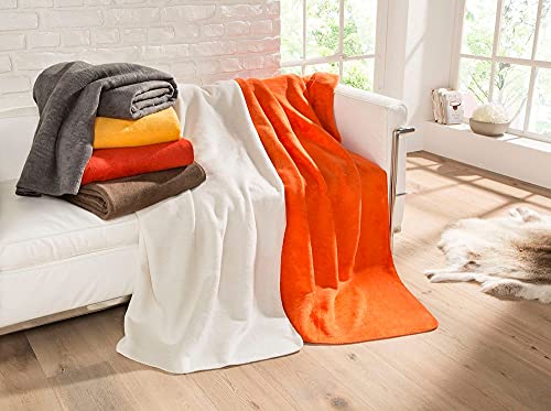WOHNWOHL® Kuscheldecke (150x200cm) • Weiche Tagesdecke • Sofadecke • Wohndecke • Schlafdecke • Oeko-Tex zertifizierte Baumwolldecke • Samtig weiche Decke • Farbe: Orange