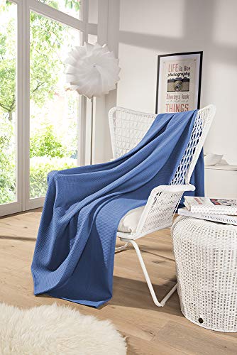 WOHNWOHL Tagesdecke 150 x 200 cm • Waffelpique leichte Sommerdecke aus 100% Baumwolle • Luftige Sofa-Decke vielseitig einsetzbar • Pflegeleichte Wohndecke • Baumwolldecke Farbe: Marina