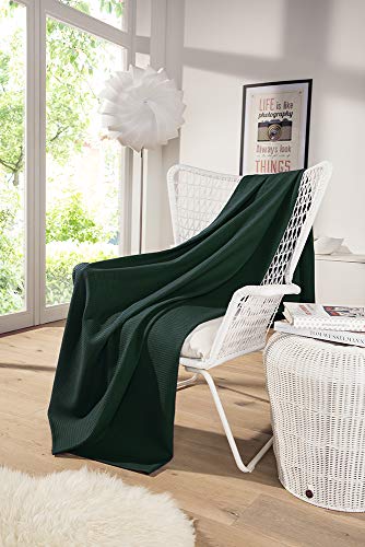 WOHNWOHL Tagesdecke 150 x 200 cm • Waffelpique leichte Sommerdecke aus 100% Baumwolle • Luftige Sofa-Decke vielseitig einsetzbar • Pflegeleichte Wohndecke • Baumwolldecke Farbe: Dunkelgrün