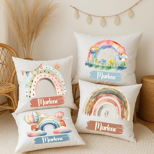 Individuell bedruckt mit Wunschnamen – organisieren Sie ein Kissen personalisiert mit dem Namen Ihres Kindes! Ideal als Geschenk zur Geschlecht Mädchen, Geburtsgeschenk Junge oder Deko Kissen mit Füllung für Mädchen und Jungen.