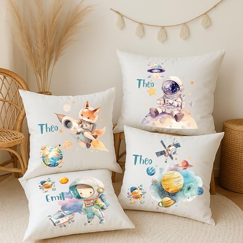 Kuschelig weich & perfekt für kleine Astronauten – unser Zierkissen mit Füllung und Bezug ist weich und Flauschig. Ideal als Kuschelkissen Kinder, Bettkissen oder Kuscheltier Ersatz – mit coolen Raketen- und Planeten-Motiven!