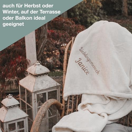 🛋️ VIELSEITIG EINSETZBAR: Ob zum Kuscheln auf der Couch, zum Picknicken im Park oder zum Schlafen im Bett ist die bestickte und personalisierbare Kuscheldecke optimal geeignet.