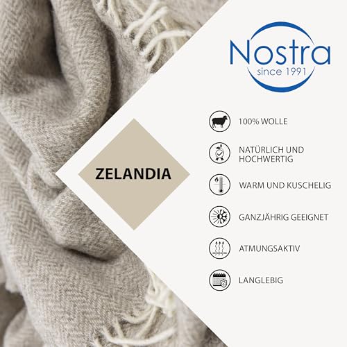 Wolldecke 140×200, 100% Schurwolle, warme & langlebige Decke, weiche Wohndecke Wolle, kuschelige Decke Wolle für Sofa & Bett, Hochwertige Schurwolldecke mit Fransen – Nostra ZELANDIA Wool Blanket