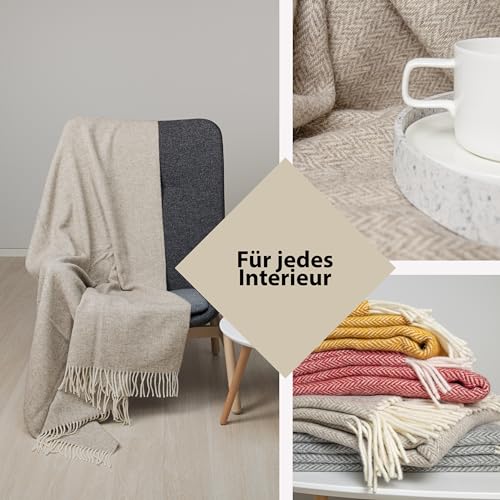Elegantes Design & ideale Größe: Die zeitlose echte Wolldecke mit stilvollen 10 cm Fransen verleiht jedem Sphäre eine elegante Schreiben. Mit einer Größe von 140 x 200 cm eignet sie sich ideal zum Einkuscheln oder denn dekorativer Sofaüberwurf.