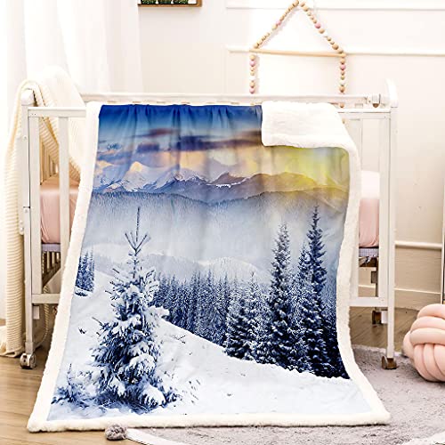 Wolldecken Flauschige Flanell Fleecedecke 180X200Cm Weißer Schnee Im Wald Muster Wohndecken Kuscheldecken Für Kinder, Extra Dicke Warm Couch/Sofadecke, Kuschelig Weich & Pflegeleichte