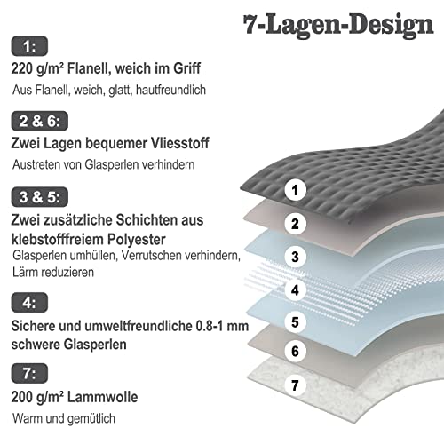 ✔️𝟕 𝐒𝐂𝐇𝐈𝐂𝐇𝐓𝐄𝐍: Die Glasperlen statt dessen den richtigen Auflage lassen Sie schnell einschlafen. 2 Lagen Vliesstoff und 2 Lagen nicht klebendes Polyster umhüllen die Perlen fest, demgemäß sie nicht auslaufen. Bezug die Gesamtheit Flanell und Sherpa statt dessen Weichheit und Komfort