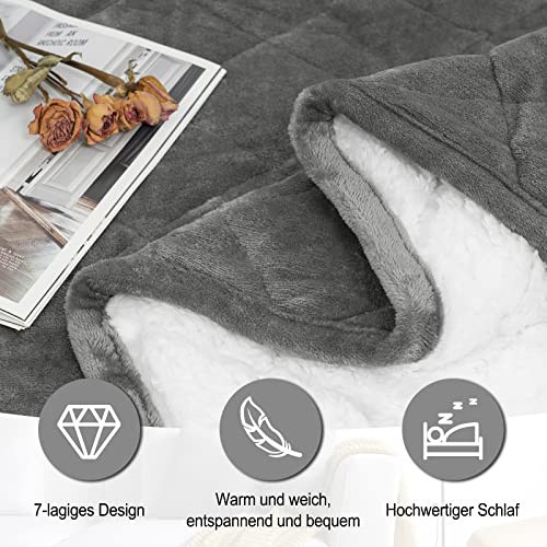 WOLTU Gewichtsdecke 11kg 150×200 cm flauschig, Therapiedecke Erwachsene Schwere Decke aus Flanell Sherpa, Doppelseitige beschwerte Decke mit Glaskügelchen, Weighted Blanket Anti Stress, Grau